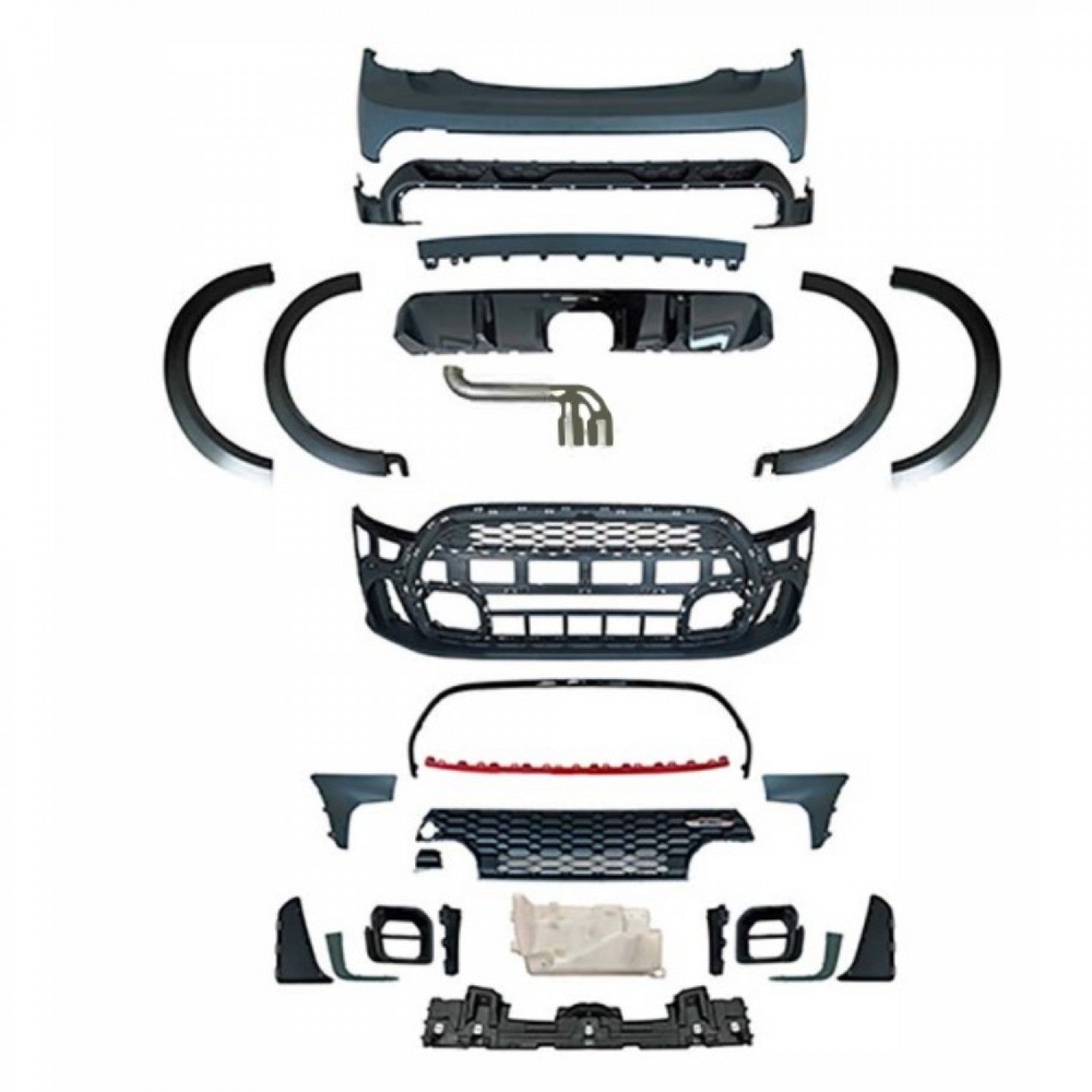 Upgrade your Mini Cooper F56 Hatchback and F57 Convertible (2014–2020) with this JCW Look Body Kit. Designed to replicate the aggressive John Cooper Works styling, this full kit includes both front and rear bumpers, grilles, and trim parts. Manufactured in durable ABS plastic, the kit is delivered unpainted and ready for customization. Provides OEM-style fitment for easy installation while giving your Mini a bold and sporty appearance
